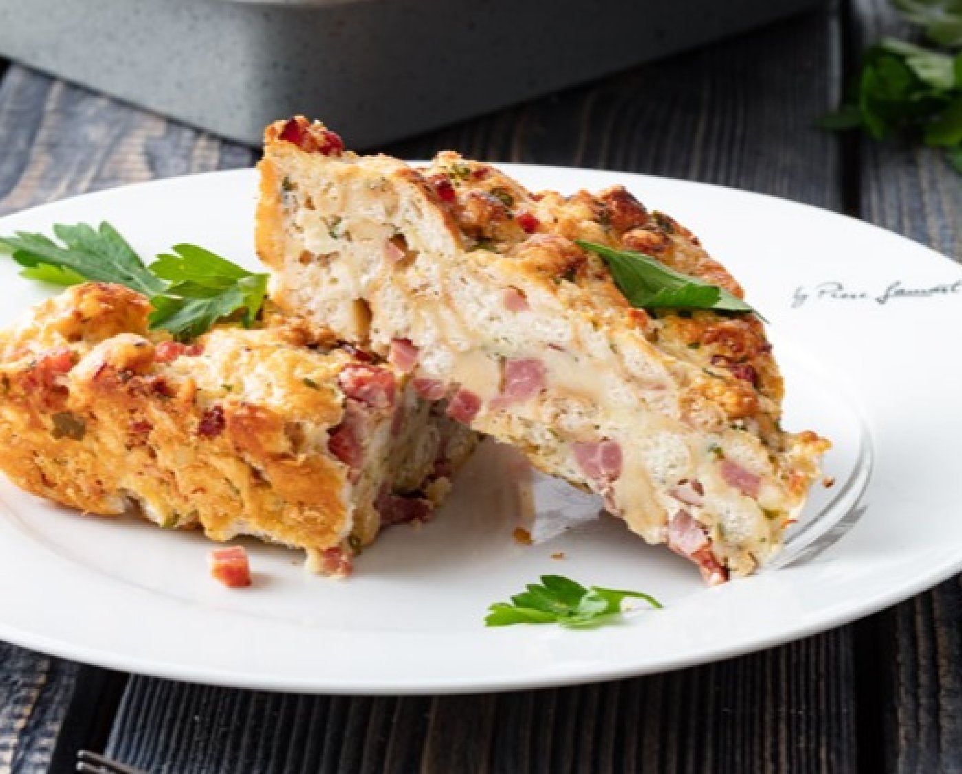 Nádivku rozprostřete do máslem vymazané formy a pečte v předehřáté troubě na 190 °C cca 30–40 minut dozlatova.