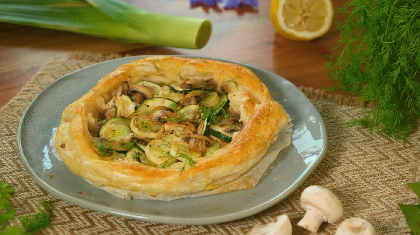 Receptů na zpracování cuket není nikdy dost. Kombinaci křupavého listového těsta s čerstvým sýrem, žampiony a pórkem s cuketou si zamilujete.
