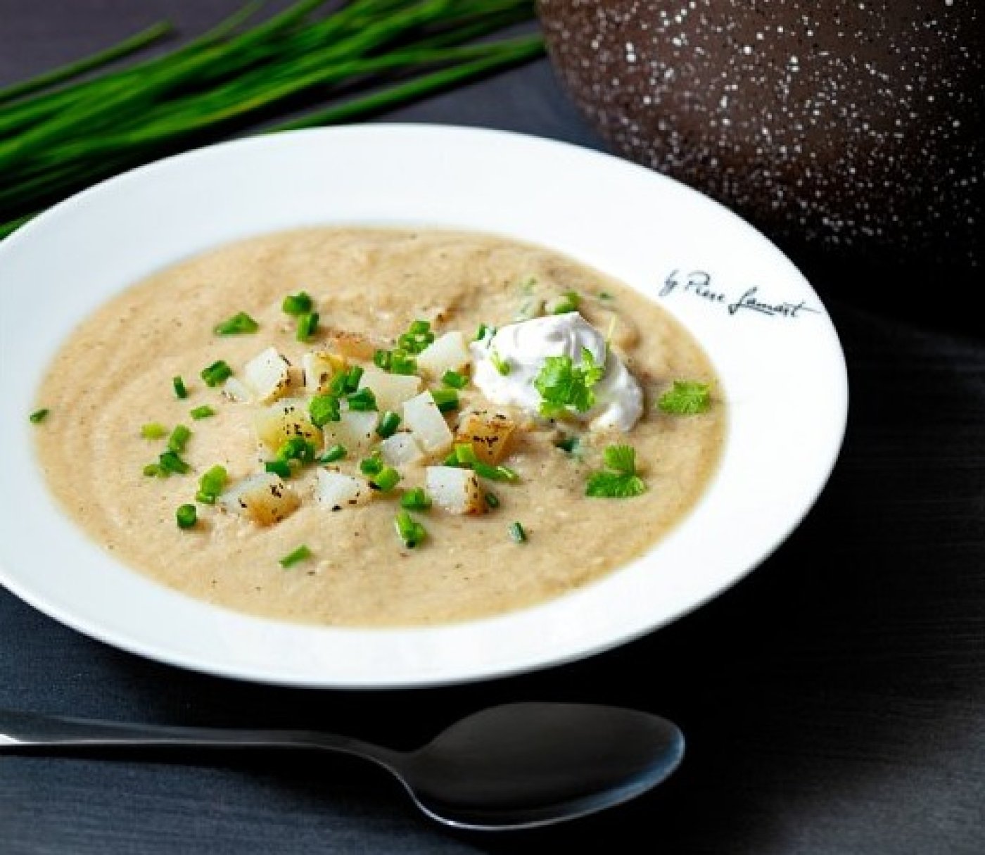 Nakonec přidejte pečené kedlubny, křen a polévku rozmixujte na jemný krém. Dle potřeby osolte, zjemněte zakysanou smetanou a posypte nasekanou pažitkou.