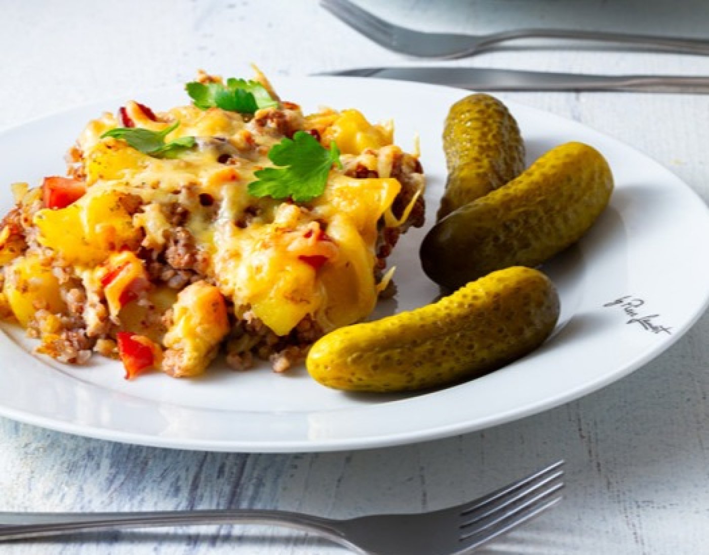 Přendejte do pekáče vymazaného zbylým sádlem a posypte nahrubo nastrouhaným sýrem. Pečte 15–20 minut na 200 °C nebo dozlatova.