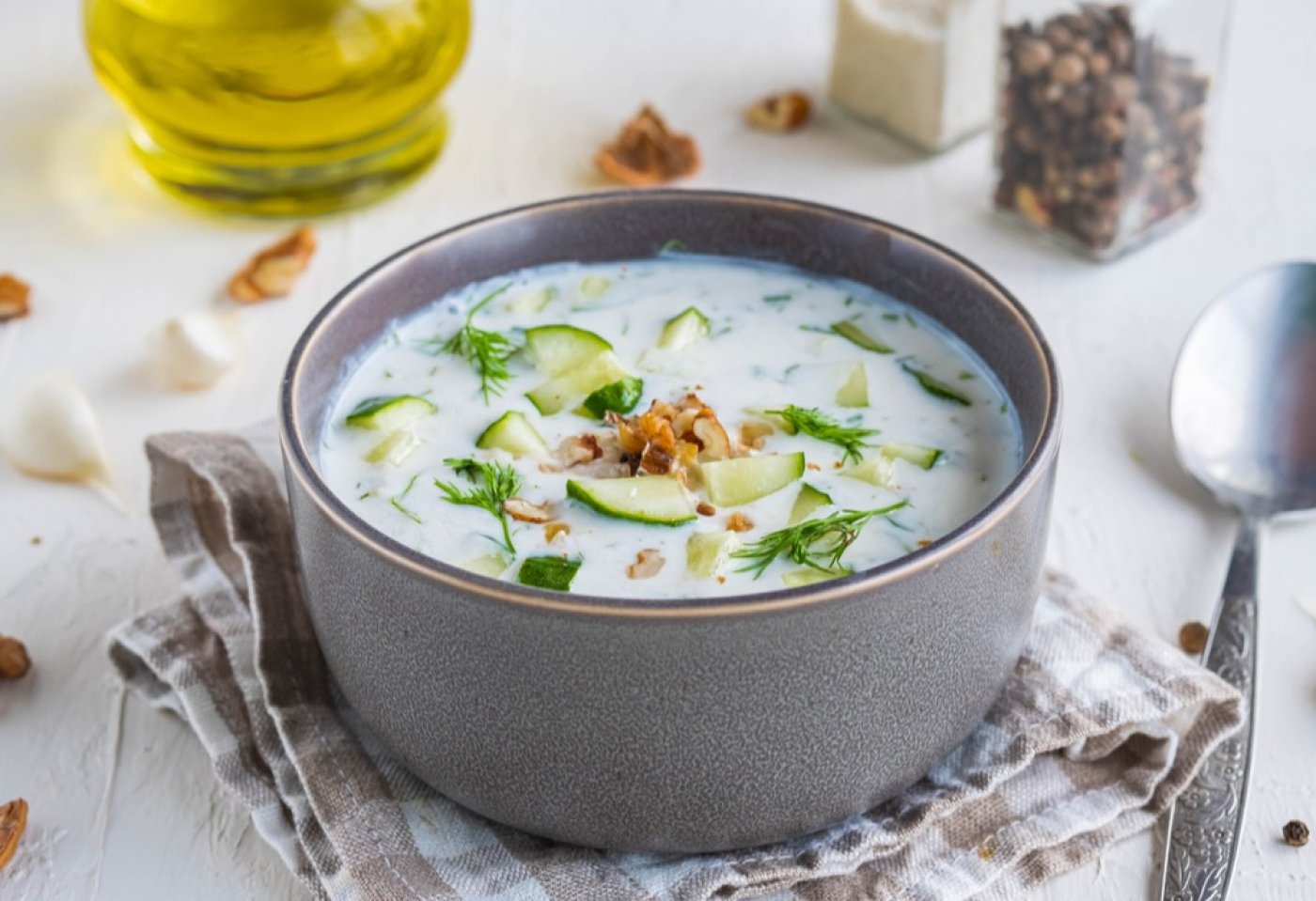 Objevte kouzlo bulharské kuchyně s osvěžující a naprosto jednoduchou studenou polévkou Tarator, která je lehká a svěží. Základ tvoří bílý jogurt, který se smíchá s nastrouhanou okurkou, česnekem a koprem. Nakonec se polévka ozdobí vlašskými ořechy. Tarator se podává vychlazený a skvěle se hodí jako lehký oběd nebo večeře během horkých letních dní.