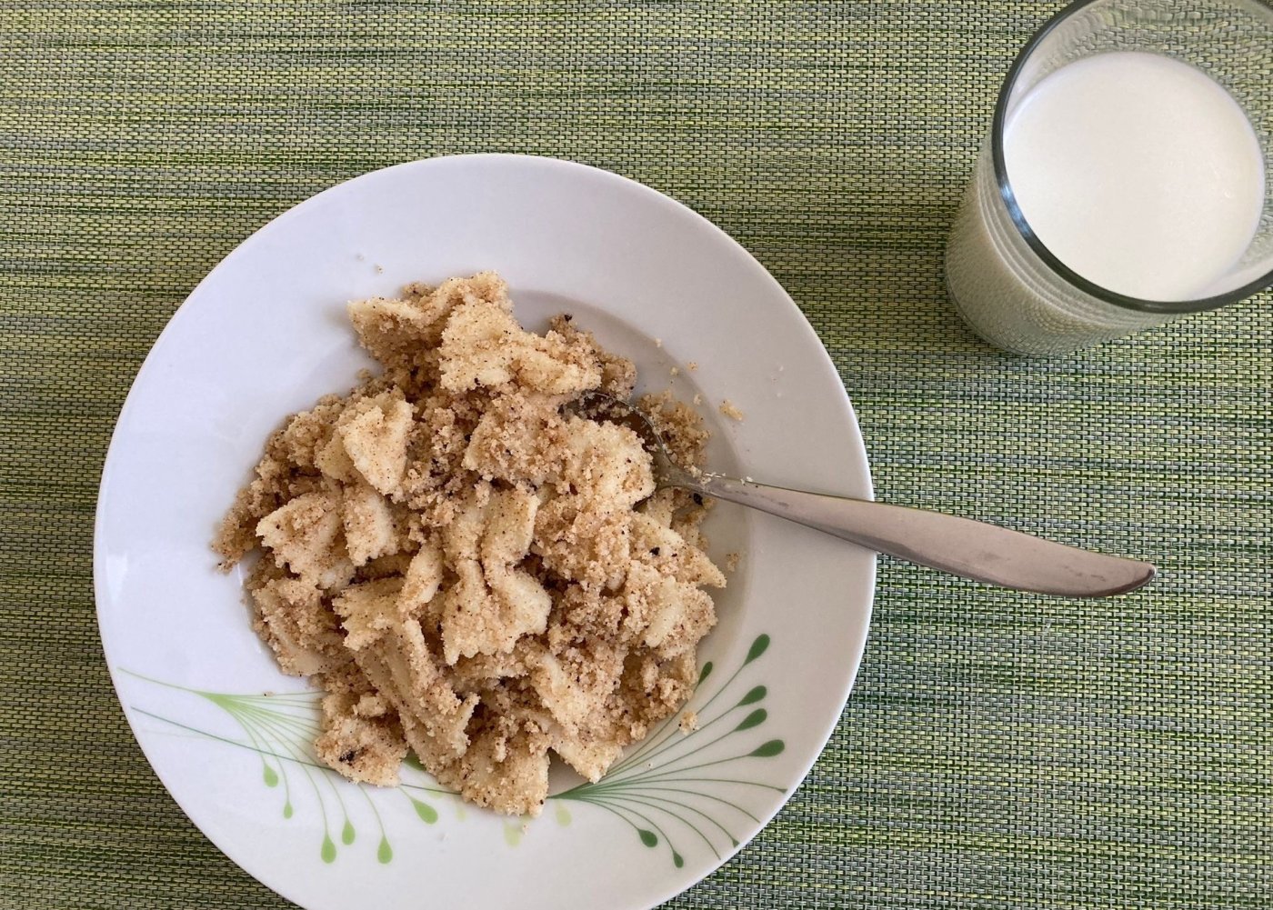 Krupici smícháme s těstovinami a přidáme trochu sádla.