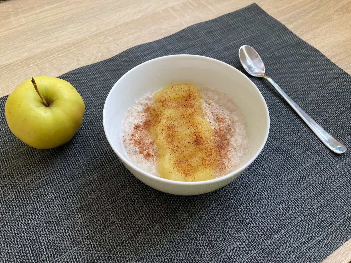 Hotovou kaši můžeme ozdobit jablkovým pyré.