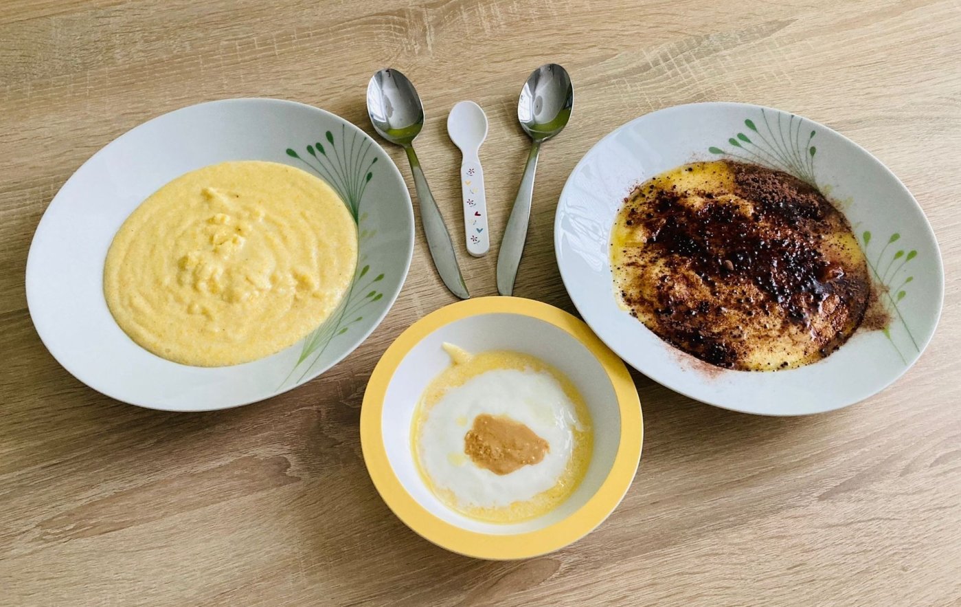 Polentovou kaši můžete ozdobit jogurtem, arašídovým máslem nebo Grankem.