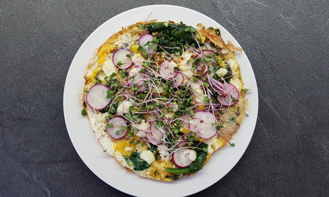 Vaječná omeleta je skvělým způsobem, jak začít den plný energie. Pokud hledáte inspiraci na výživnou a zdravou snídani, která i skvěle chutná, omeleta se špenátem a ředkvičkami je to pravé. Špenát, bohatý na železo a další důležité živiny, se skvěle doplňuje s křupavými ředkvičkami a jejich klíčky. To vše v kombinaci s jemnou chutí vajec a sýru. Omeleta poslouží nejen jako vydatná snídaně, ale také večeře či rychlý oběd.