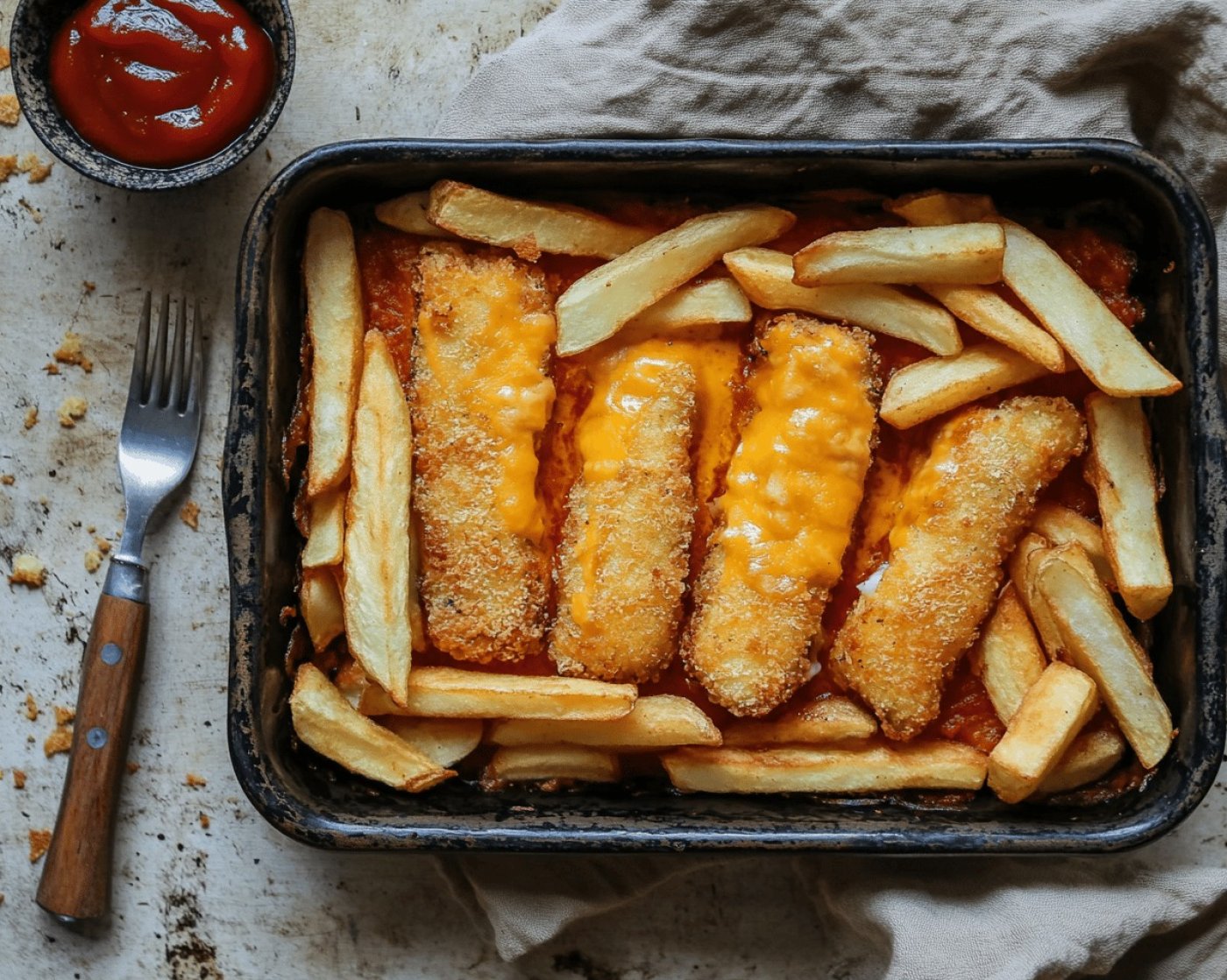 Vyzkoušejte trend, který si získal TikTok – zapečené rybí prsty se sýrem a hranolky! Křupavé rybí prsty, dokonale opečené hranolky a lahodně rozteklý sýr tvoří neodolatelnou kombinaci, která je snadná na přípravu. Tento jednoduchý recept se stal virální senzací a nyní máte šanci ho ochutnat i vy. Stačí pár surovin, pár minut v troubě a máte hotové dokonalé jídlo.