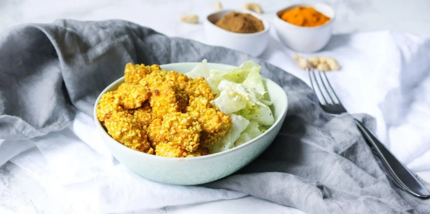 Připravte si zdravé domácí kuřecí nugetky bez smažení! Křupavá kešu krusta dodá jemnému kuřecímu masu skvělou chuť a výživnou hodnotu. Podávejte s lehkým jogurtovým salátem pro vyvážené a chutné jídlo, které si zamilujete. Rychlý a snadný recept, ideální pro zdravý oběd či večeři!