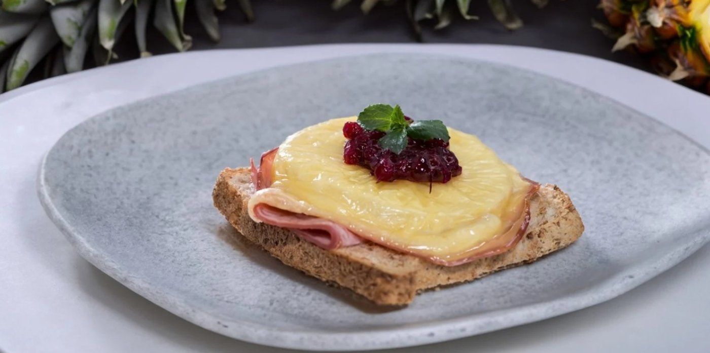 Po upečení ozdobte každý toast malým množstvím brusinkové nebo třešňové omáčky a ihned podávejte.