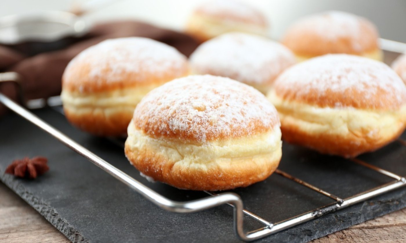 Po vychladnutí koblížky naplníme marmeládou podle chuti (pomocí cukrářského sáčku nebo lžičky) a posypeme je moučkovým cukrem.