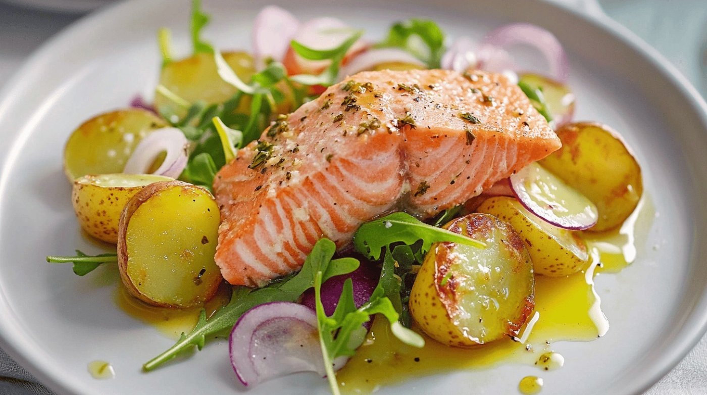 Losos s jarním bramborovým salátkem je skvělý způsob, jak vylepšit jídelníček o zdravé rybí maso, které je oblíbené i mezi dětmi a těmi, kdo ryby příliš nemusí. Losos se svou jemnou chutí je ideální volbou. Podávaný s lehkým bramborovým salátem bez majonézy, vás nadchne svou jednoduchostí a lahodnou chutí. Připravte si tuto skvělou variantu jídla na každý den.