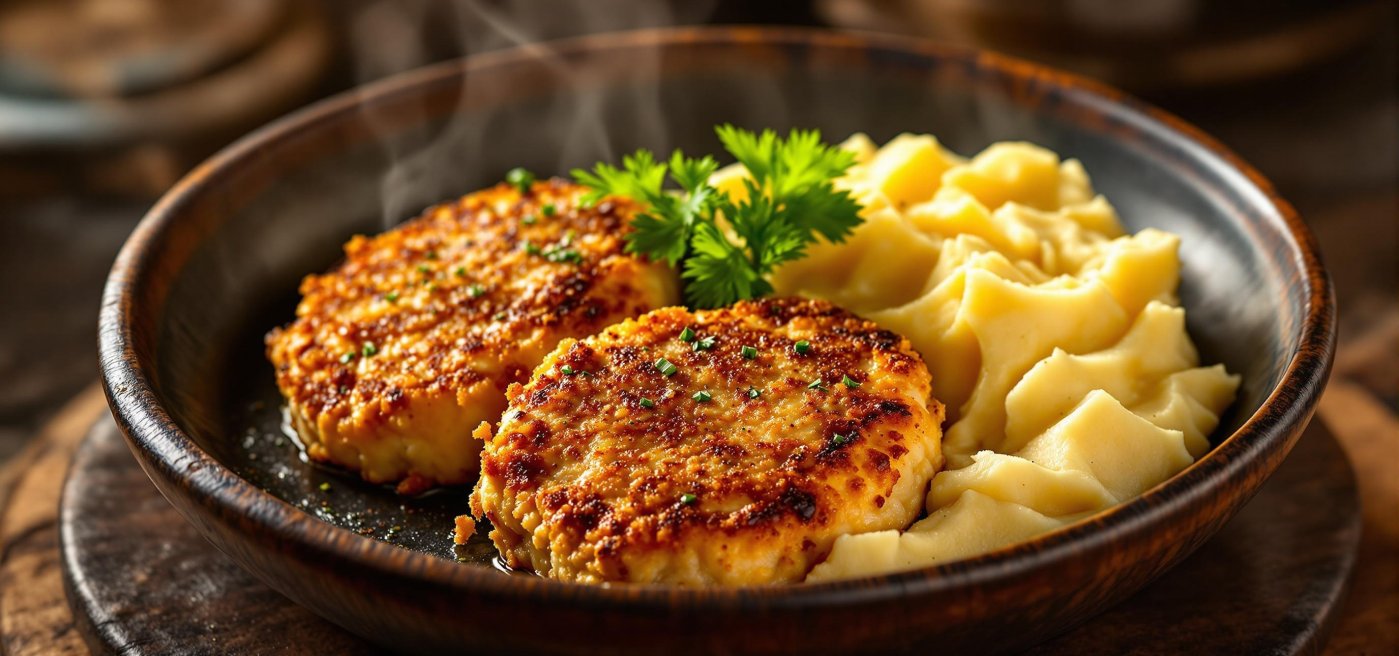 Smažené placičky servírujte s bramborovou kaší nebo vařenými brambory pro ideální kontrast chutí.