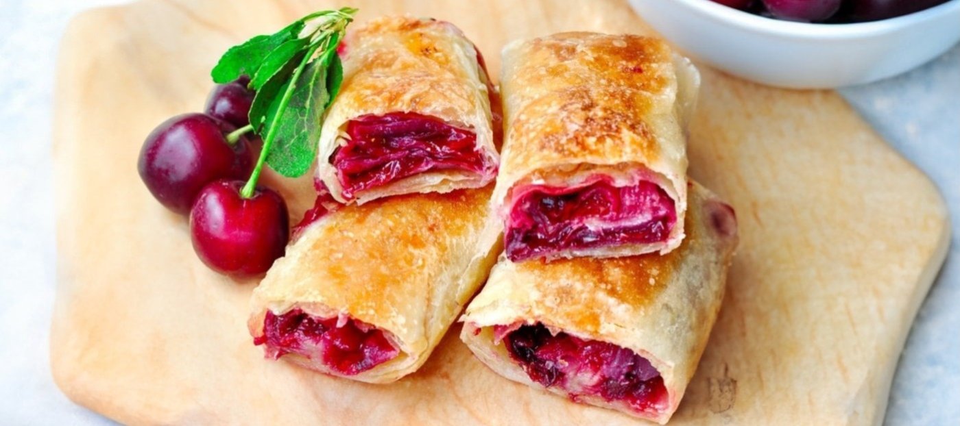 Užijte si křupavé třešňové taštičky z listového těsta s nádechem vanilky a třešňovice. Tento dezert vás okamžitě přenese do světa francouzských cukráren, a přesto ho hravě zvládnete připravit u vás doma. Náplň zkaramelizovaného cukru s třešněmi doplněná citronovou šťávou dodává taštičkám unikátní chuť, kterou podtrhne trik s karamelem.