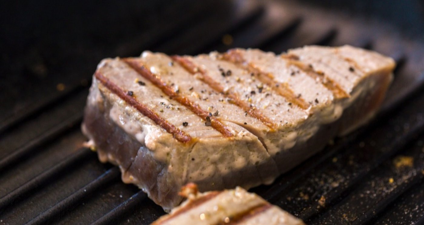 Nejprve rozdělte filety tuňáka na čtyři porce a poté je lehce osolte a opepřete. Připravte si gril, rozhřejte ho a potřete mřížku olejem nebo kouskem slaniny, aby se ryba nepřilepila.
