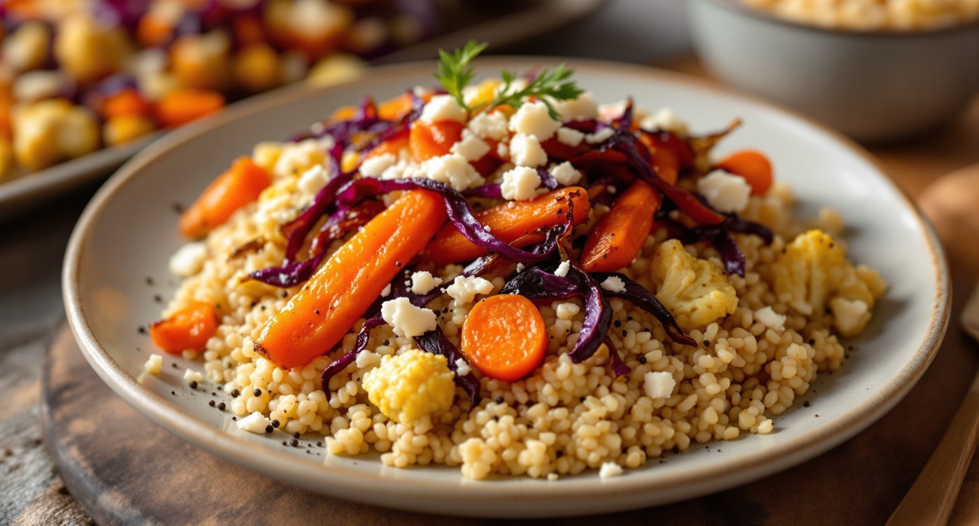 Pokud už máte dost sladkého pečení a chcete něco slanějšího, tento pokrm je pro vás ideální. Pečená zimní zelenina v kombinaci s bulgurem a brynzou nabízí hřejivou chuť, která je ideální pro zimní období. Krémová a lehce pikantní brynza dokáže chutě krásně propojit a výsledný pokrm se stane skvělým a zdravým zpestřením každého jídelníčku.