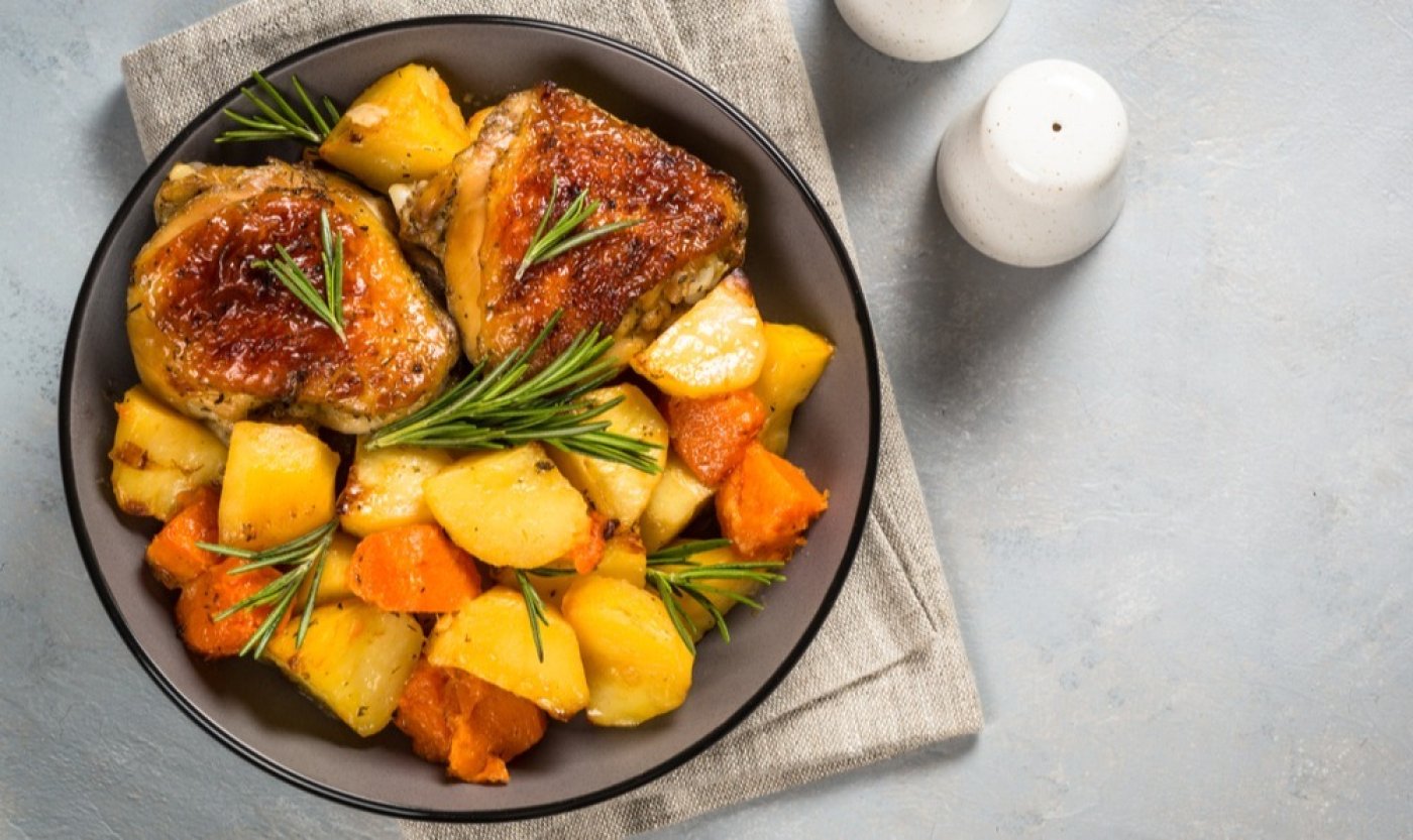 Křupavá kuřecí kůžička, šťavnaté maso a podzimní chuť dýně s bramborami, vše v jednom pekáči zalité voňavou omáčkou. Tento recept vás nejen zahřeje, ale i potěší svým barevným a jednoduchým vzhledem, který působí slavnostně. Ideální na rodinný oběd nebo víkendovou večeři, když si chcete dopřát gurmánský zážitek bez dlouhého vaření.