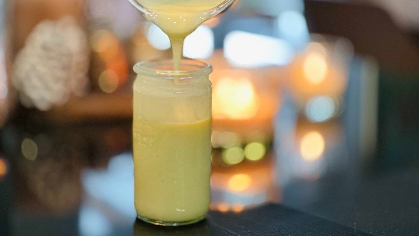 Pokud jej nebudete ihned používat, umístěte sklenici do nádoby se studenou vodou, aby zůstalo čerstvé.