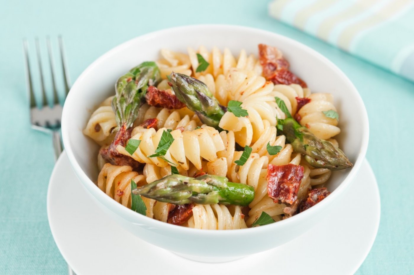 Recept na těstoviny s pestem, sušenými rajčaty a pečeným chřestem si určitě oblíbíte. Překvapí vás nejen svou rychlou a jednoduchou přípravou, ale také báječnou chutí.